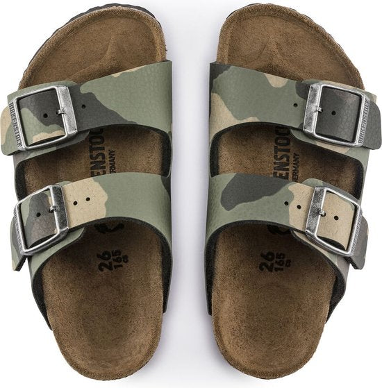 The Arizona sandal, sized down just for kids. Our iconic style is updated in signature Birkibuc®, durable for them and easy to clean for you. Designed on an original contoured footbed for play-all-day support.