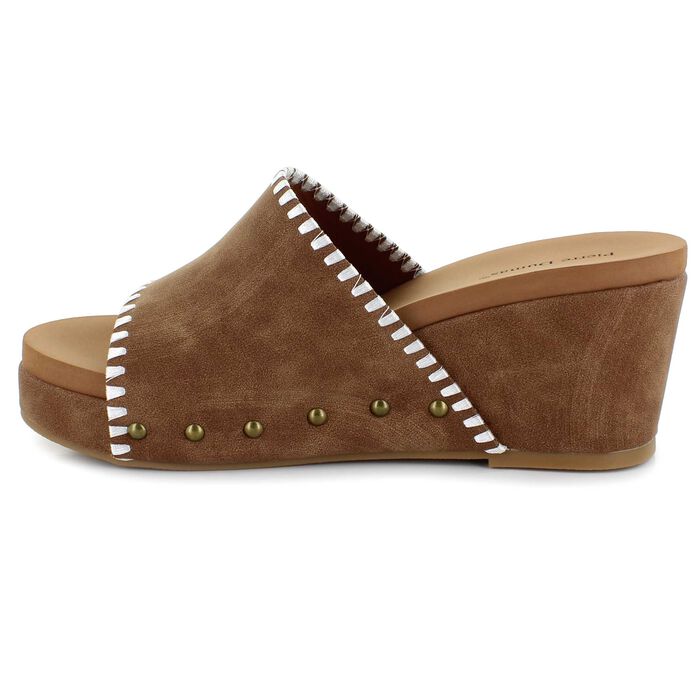 Step into effortless elegance with the Pierre Dumas Vivian-2 wedge dress shoe. Designed with a sleek faux-leather upper and subtle stitching details, this stylish wedge offers a refined look for any occasion. The slip-on style ensures easy wear, while the cushioned comfort insole provides lasting support. A sturdy synthetic outsole enhances stability, making it a reliable choice for all-day wear. Perfect for work or special events, the Vivian-2 combines sophistication with comfort.