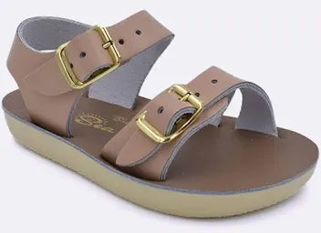 The Sea Wee is made only in the smallest baby sizes. They have added flex over the toe making this little sandal a perfect starter pair for your tiny adventurer. A lightweight, cushioned urethane sole, rust-proof brass buckles, and scuff-resistant water friendly genuine leather make these sandals ideal for in-and-out of water wear. Both boys and girls can wear these with anything and look great.