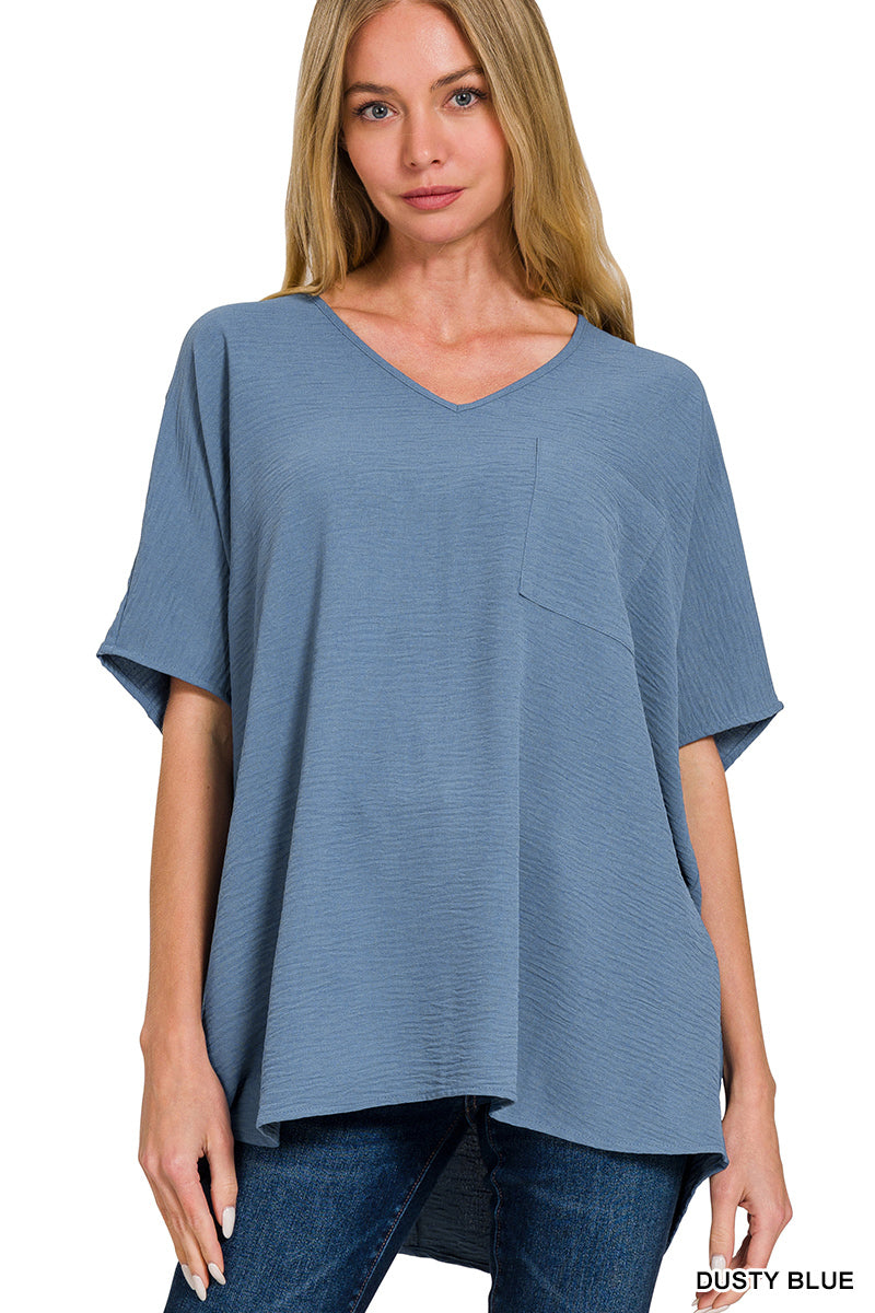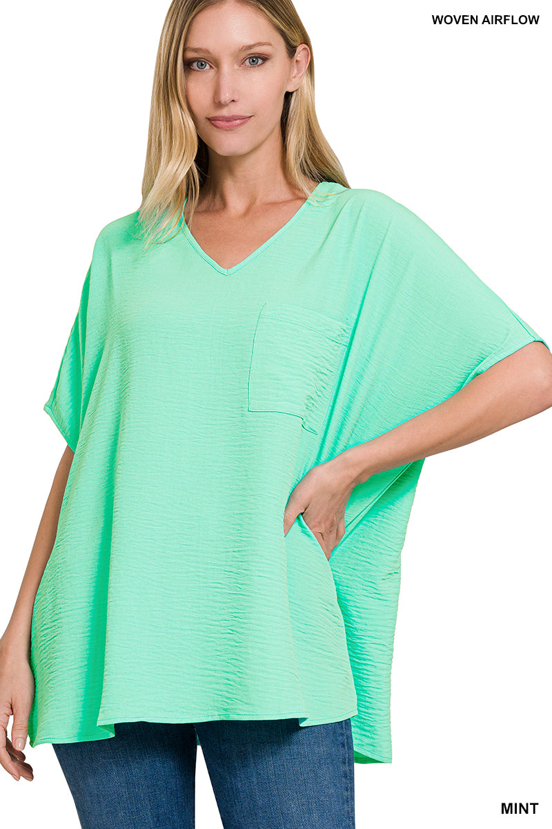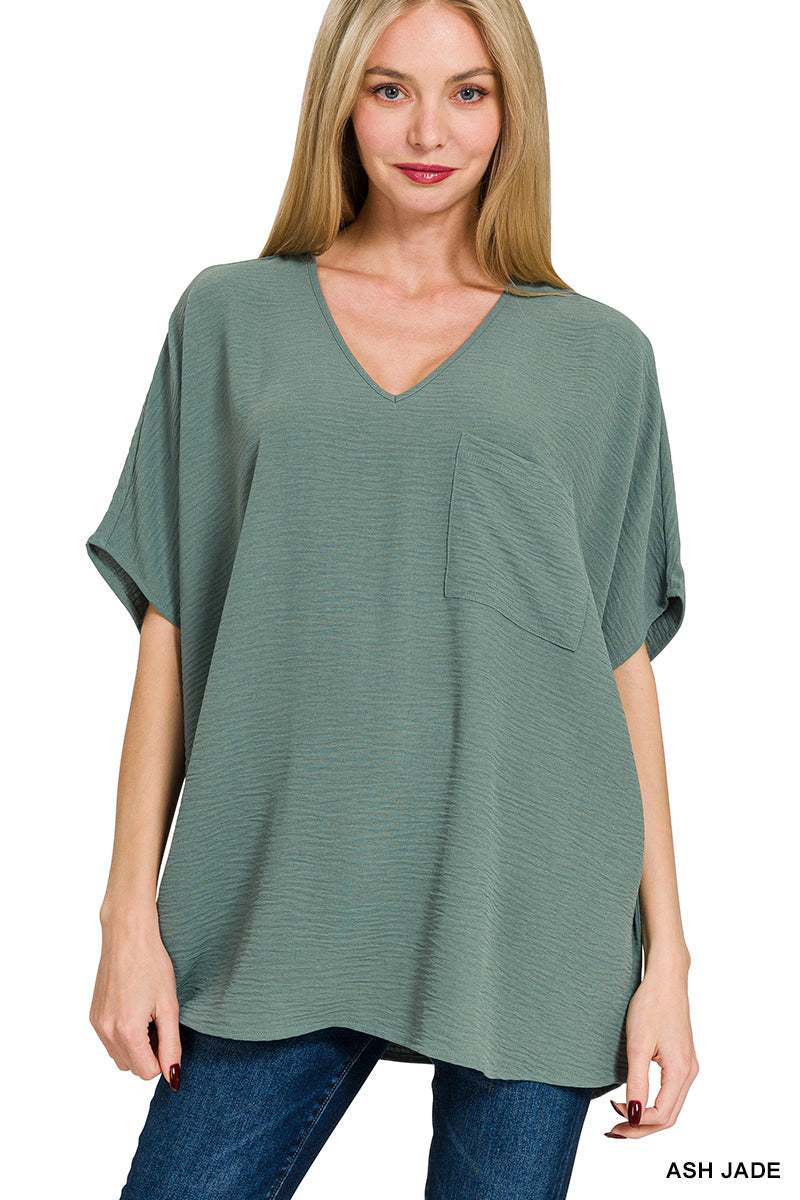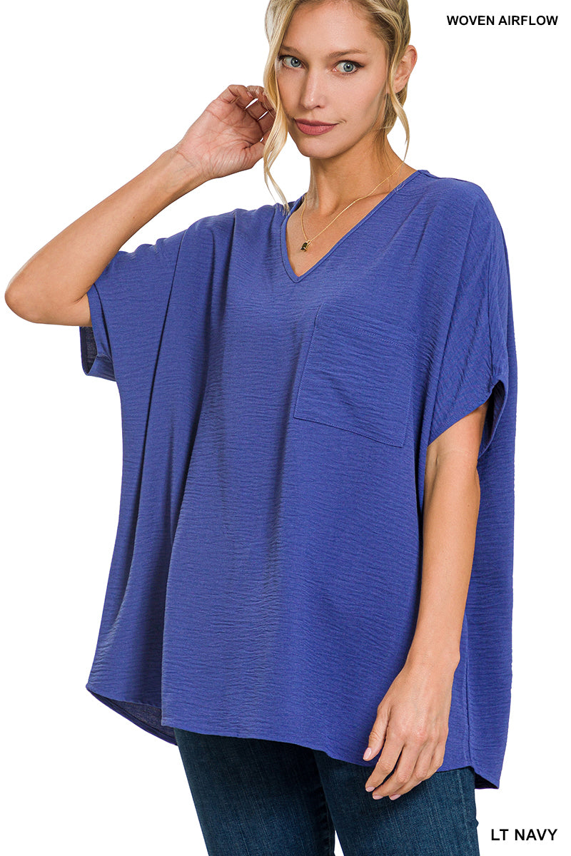 WOVEN AIRFLOW V-NECK DOLMAN SHORT SLEEVE TOP