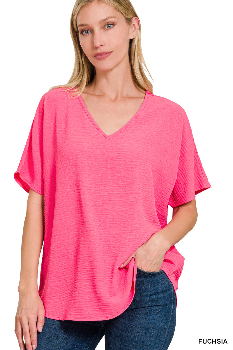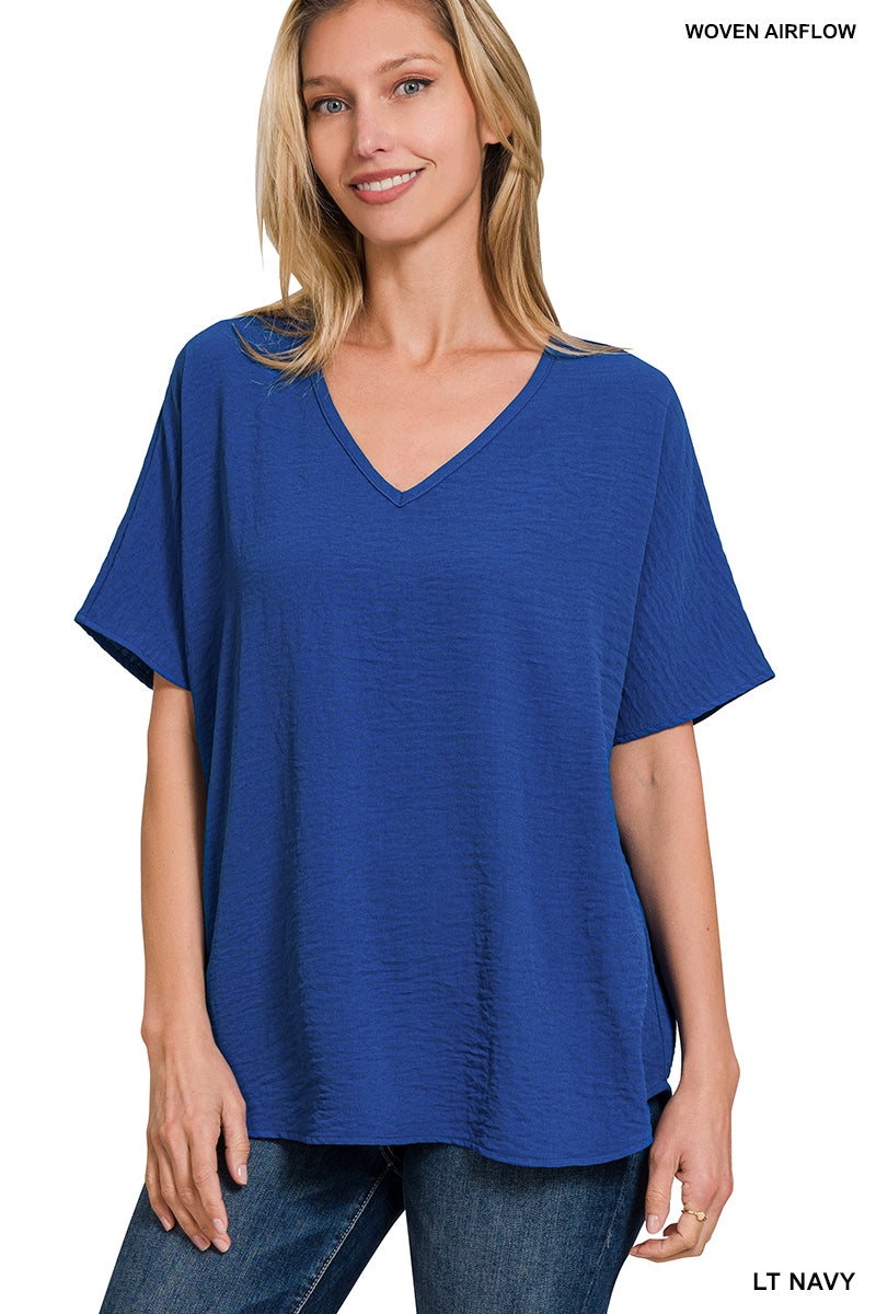 WOVEN AIRFLOW V-NECK SHORT SLEEVE TOP