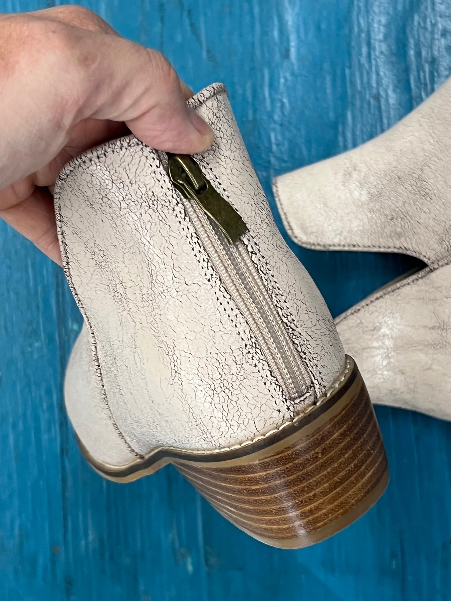 Add instant edge and Western charm to your wardrobe with these show-stopping ankle booties. The distressed vegan leather gives them that lived-in, designer look, while the deep side cutouts make them a trend-right statement you’ll wear season after season.
