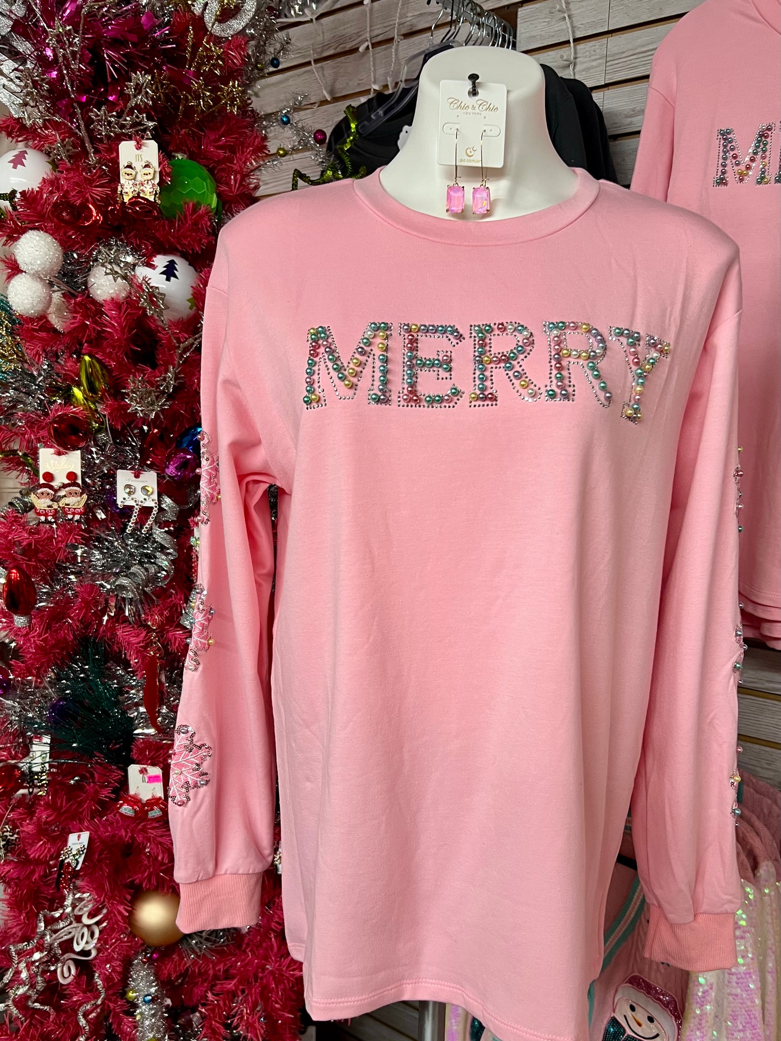 Grace & Emma – Beaded Merry Long Sleeve Tee
