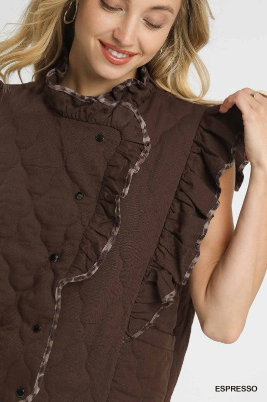 Quilted Ruffle Vest with Leopard Trim