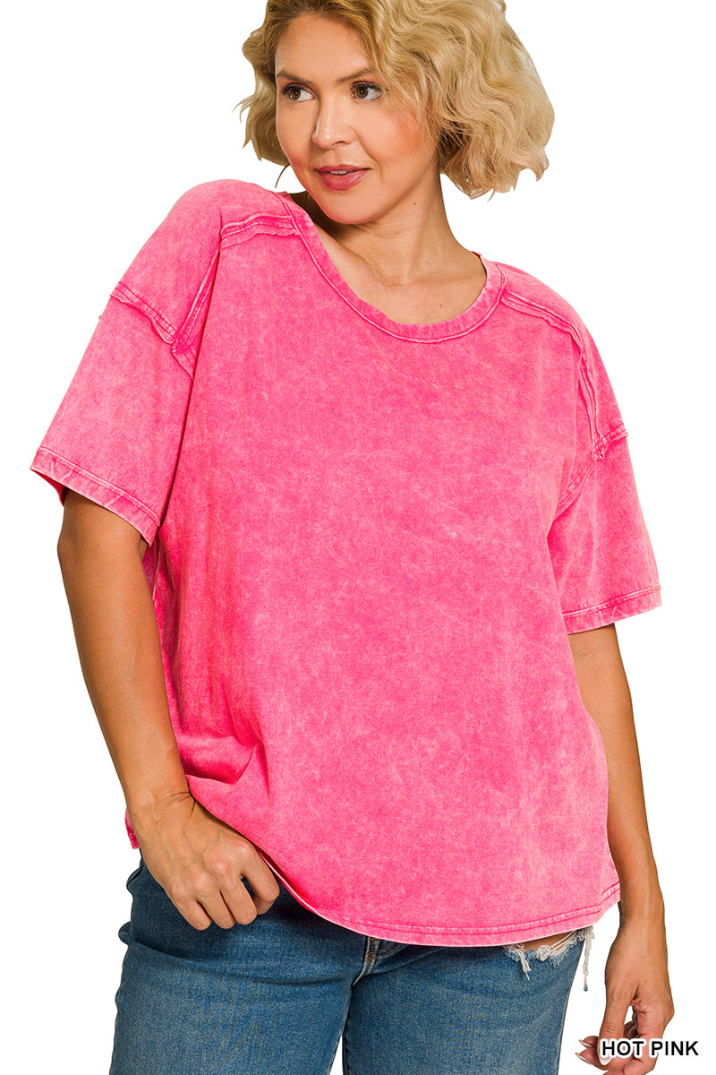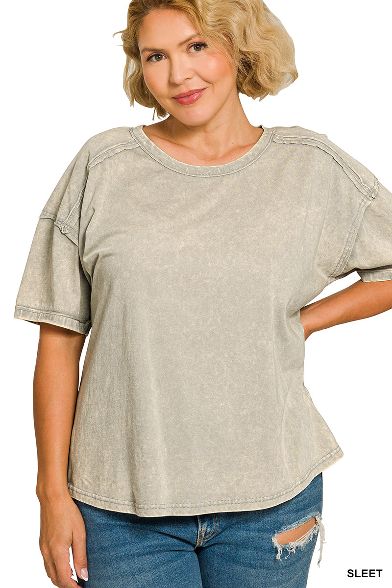 PLUS ACID WASHED ROUND NECK T-SHIRTS