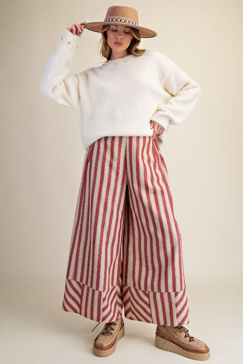 YARN DYE STRIPE WASHED PANTS-WIDE LEG PALAZZO STYLE-MINERAL WASHED-FULL LENGTH RELAXED FIT-ELASTICIZED BACK WAISTBAND-SIDE POCKETS-SMALL MEASUREMENTS : INSEAM - 27.5" OUTSEAM - 39" & WAIST - 13.5"