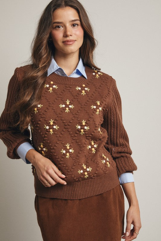 Whimsical yet wearable, this textured knit sweater blends cottagecore nostalgia with modern versatility-style it with denim, skirts, or layered over a lace dress for a sweet twist on everyday comfort.