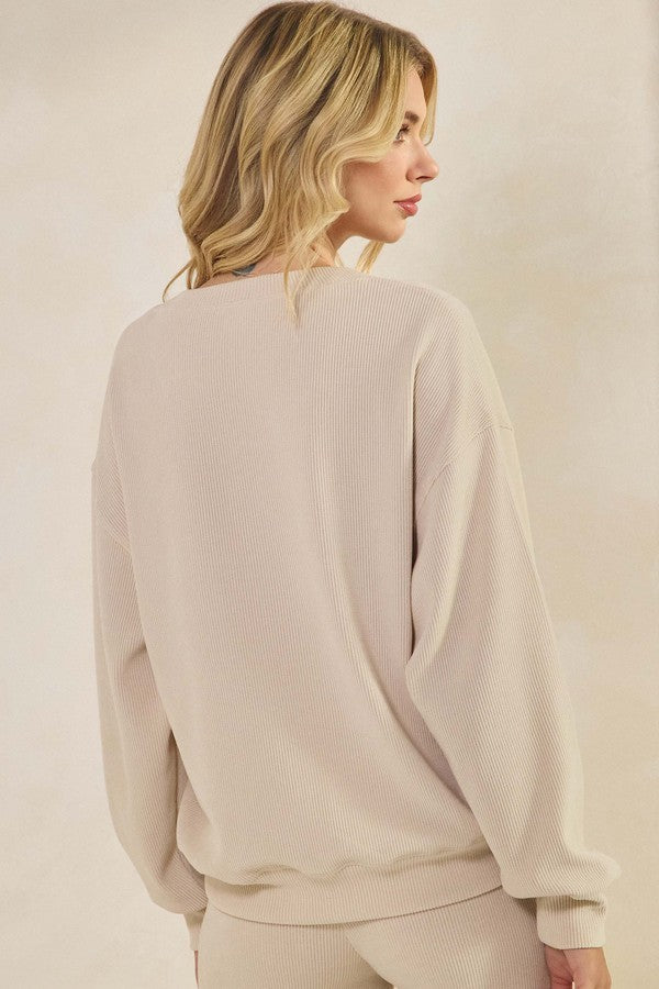 Cozy meets meaningful in this soft Corduroy crewneck top, its perfect for all-day comfort. Featuring a bold graphic that reads "God Is Love" in a vertical and horizontal cross layout, it blends casual style with an inspiring message. The relaxed fit, dropped shoulders, and wide ribbed hem add to its laid-back vibe, while a small woven patch detail near the hem lends a modern, streetwear-inspired touch. Perfect for pairing with matching lounge pants or denim for an effortlessly chic, uplifting look.
